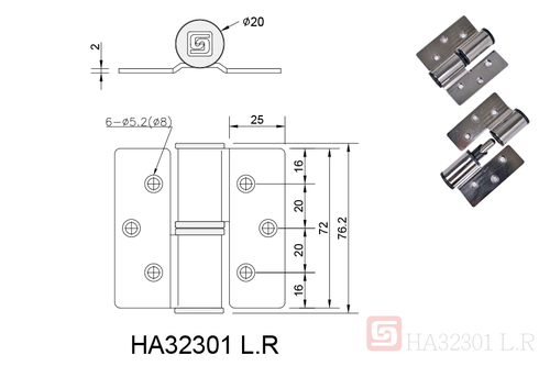 / HA32301 L.R 白鐵平貼 3"X 3 孔自動歸位鉸練