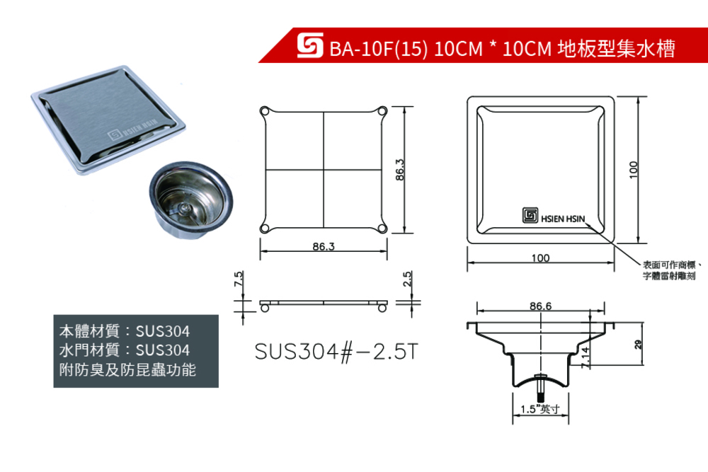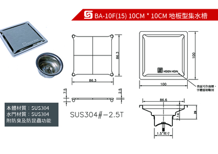 BA-10F(15) 10CM*10CM 地板型集水槽。